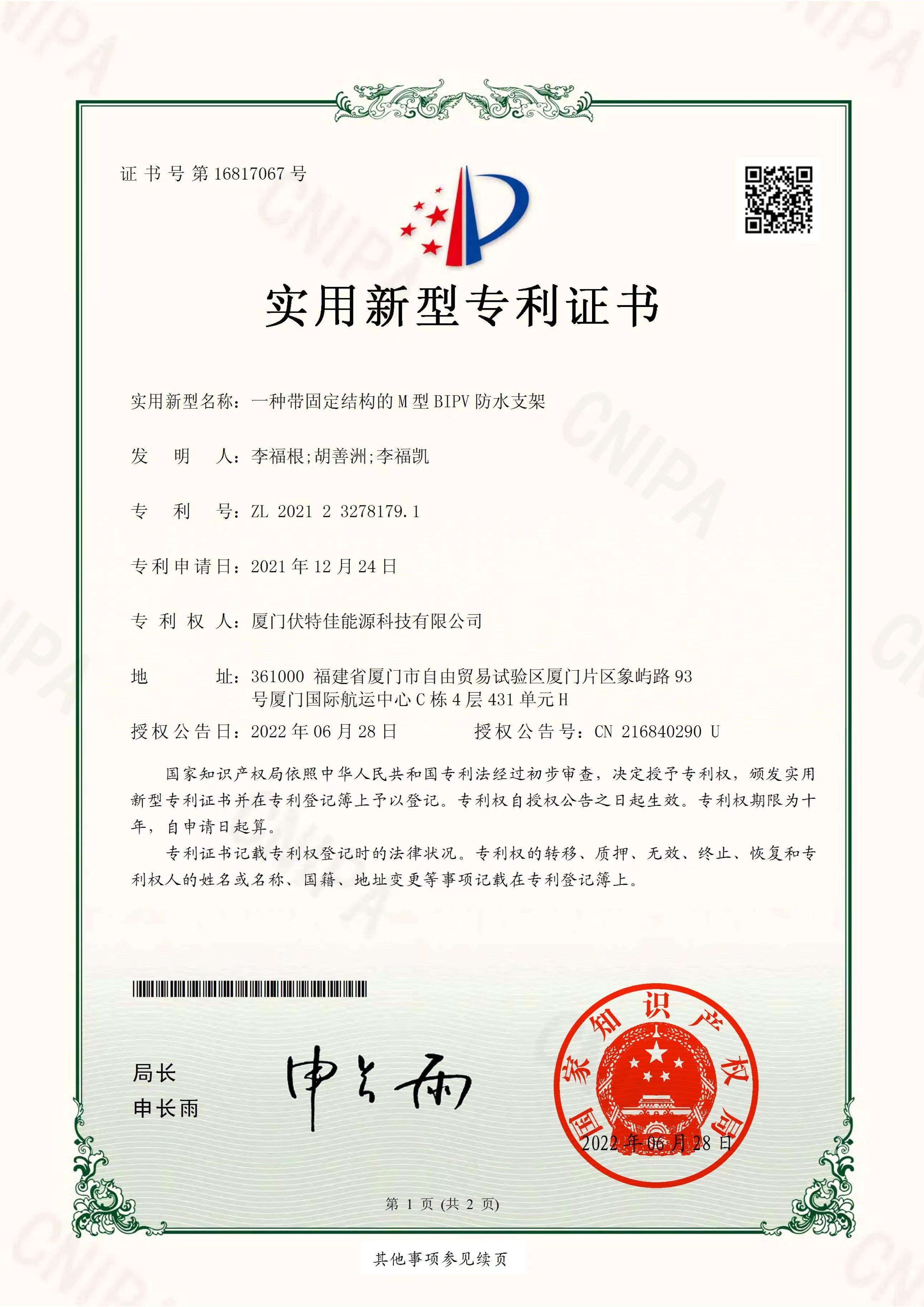 厦门伏特佳能源科技有限公司是国内专业从事光伏电站、光伏产品及应用、领域的研发、生产、销售、施工和服务于一体的高新科技企业。公司秉承着勤奋、务实、真诚、守信的企业精神,以专业的品质和卓越的创新思维成为分布式光伏发电的领军者,并励志树立行业标杆。以丰富的技术储备和国内外十余年光伏从业经验,在BIPV领域和众多产业的光电建设上取得斐然业绩。